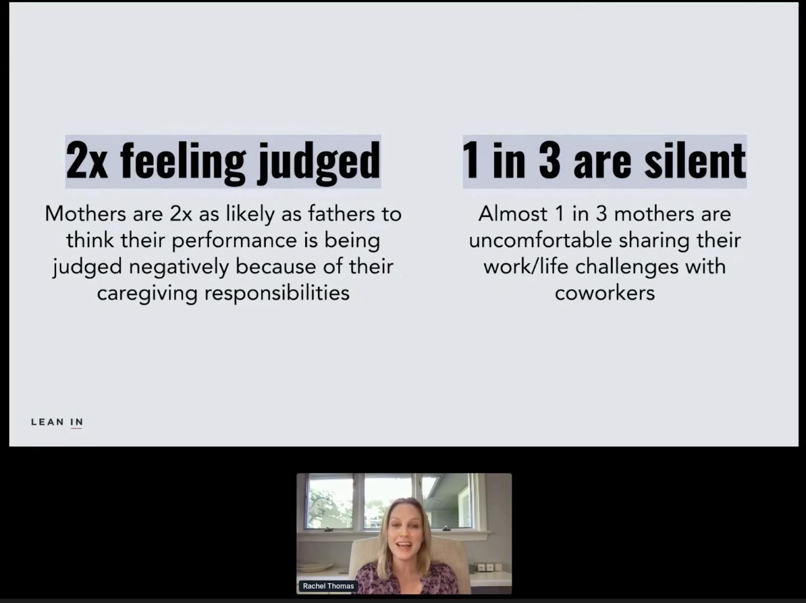 Rachel Thomas shared the women in the workforce data for 2020, and it was sobering. 1 in 4 women were considering downshifting their career or leaving the workforce due to COVID-19. Organizations don’t yet know the second-order effects, but big ones are mothers and senior-level women, in particular, are burned out. They have more they do at home, even when they have partners to rely on. They are feeling more judged and aren’t talking with their coworkers about their struggles, so it’s not clear they might need or want help.