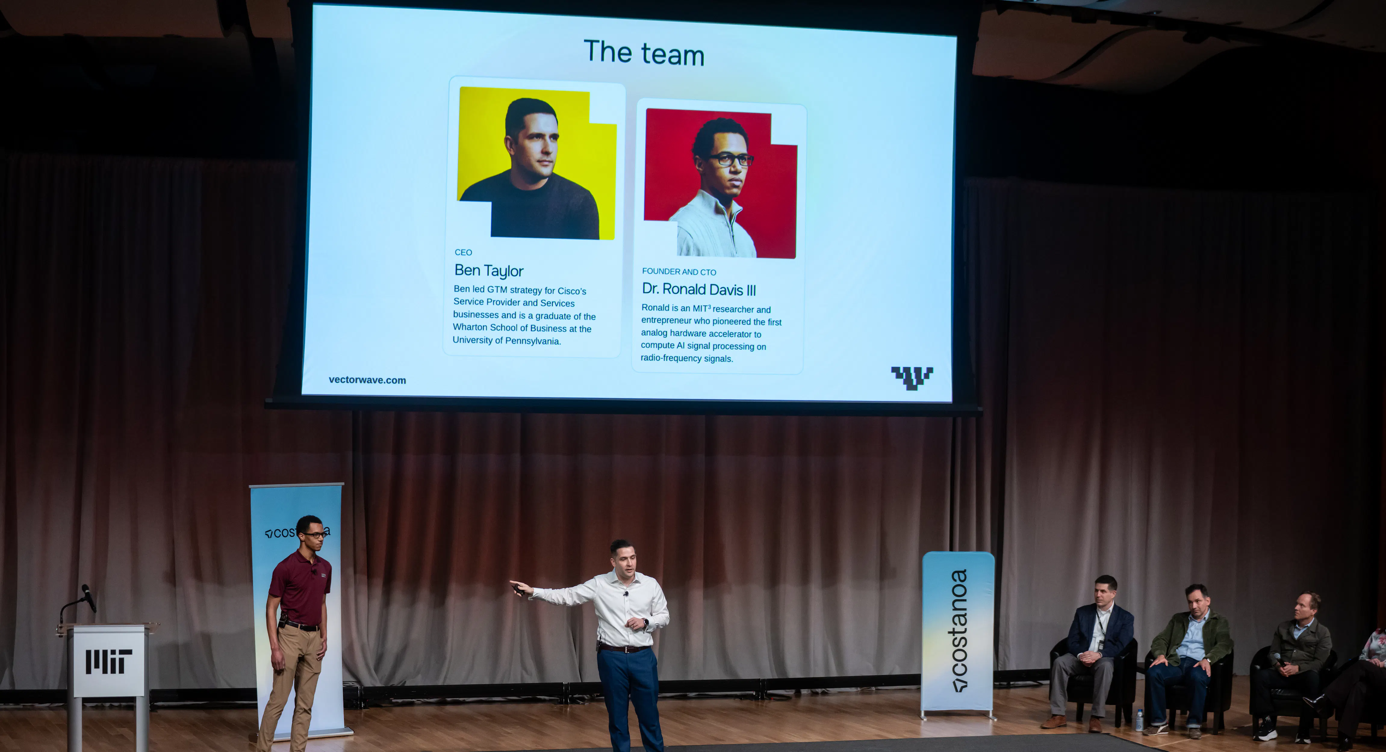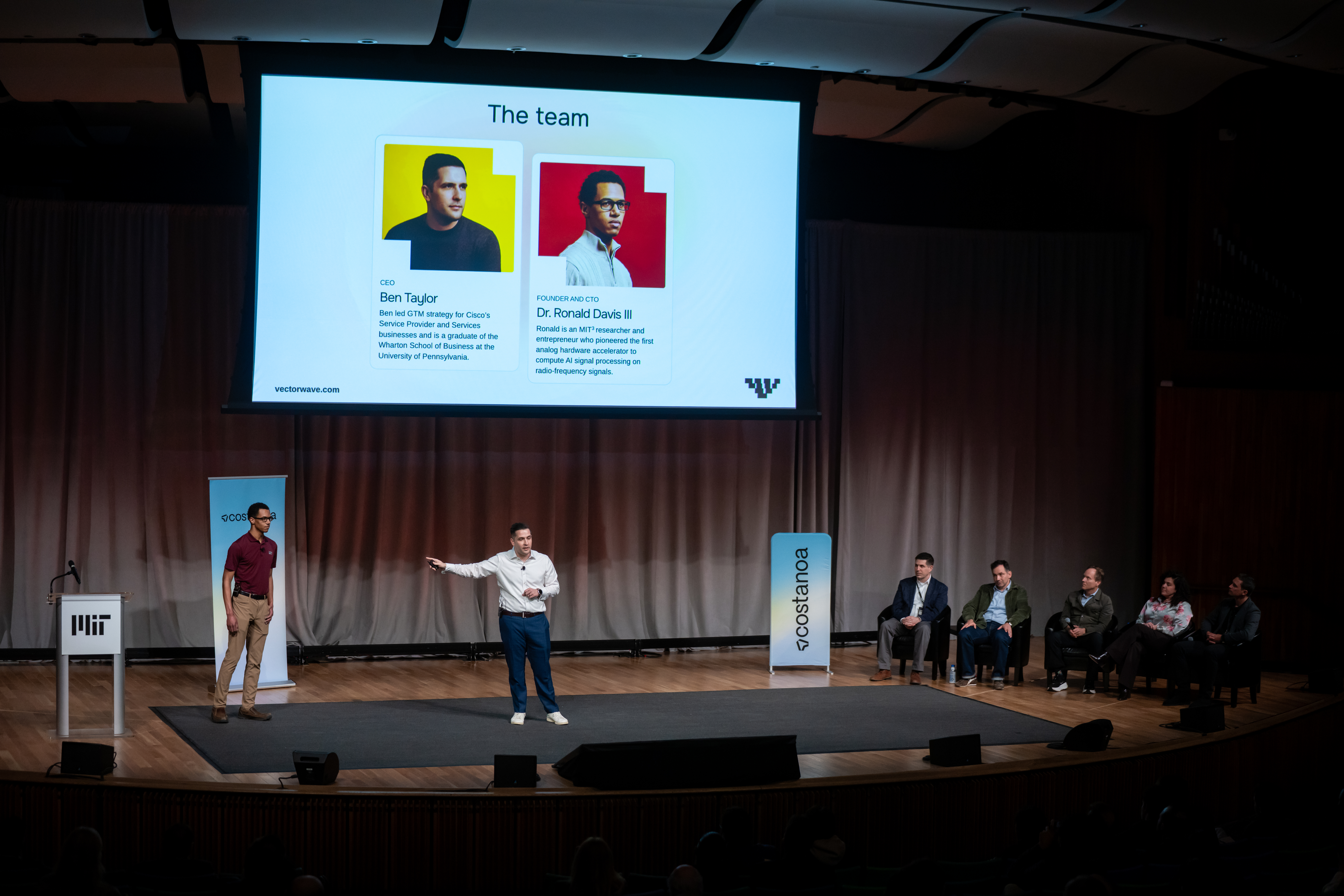 Ultimately, we awarded the top prize — a $100K SAFE — to VectorWave, an MIT spinout that built the first AI hardware accelerator specifically designed for wireless applications. Their analog processing unit (APU) is built to enhance edge compute and AI in environments where traditional digital chips fall short. It's the kind of technically differentiated, mission-relevant work that we love to back at Costanoa, and the team had exactly the right combination of conviction and intellectual honesty.
